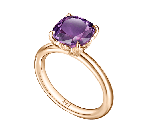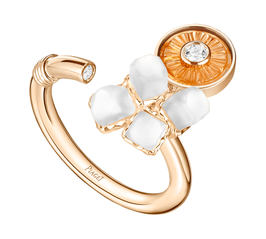 خاتم من الذهب الوردي والأحجار الكريمة وشبه الكريمة