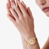 An icon made new again, revel in 70s glamour with this Limelight Gala women's diamond watch. The case of this rose gold diamond watch features two asymmetrical lugs, cambered to fit any wrist. These beautiful curves are highlighted by a diamond-paved bezel, a classic of the Limelight Gala watch collection. The expertise of Piaget artisans is epitomised in the outstanding beauty of the texture bracelet, engraving it in a scale effect that gives it an iridescent sparkle. It's more than just a luxury watch for women, it's a statement.