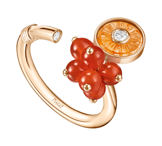 - 钻石, 红玉髓, 黄水晶, 锰铝榴石