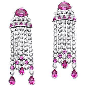 G38L7800 - 白金粉紅色藍寶石鑽石耳環