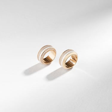 回転リングの動きに魅了されるピンクゴールド製ダイヤモンドリング。ピアジェはPOSSESSION誕生以来、今を生きる女性の多彩なパーソナリティーやスタイルを捉えたコレクションを世に送り出してきました。このピースではラウンドブリリアントカットダイヤモンドのリングと、セラミック製リングが回転します。喜び、ときめき、遊び心を象徴するPOSSESSIONの魅力が詰まったクリエイションです。
