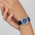 1973年のヴィンテージアイテムを再解釈した女性用モデル。曲線を描きながらアシンメトリーに長く伸びた2本のラグが、エレガントなラウンドケースを引き立て、手首にぴったりとフィットします。その官能的なシルエットを、ブリリアントカットダイヤモンドが少しずつ大きさが変わるように1列にセットされたベゼルが強調。ピュアで控えめなブルーの文字盤は、洗練されたアリゲーターストラップと調和を奏で、現代的な女性らしさのオーラをきらきらと放ちます。