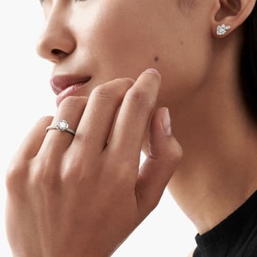 イヴ・ピアジェ・ローズが蕾から大輪の花へと姿を変える一瞬の美しさをリングに模り、その花びらの中央には1粒のダイヤモンドが煌めきます。柔らかなフォルムのアームにも高貴なダイヤモンドをセッティングし、女性らしいロマンティックな雰囲気とスタイリッシュさを併せ持つソリテールリングが、指先で永遠に咲き誇ります。