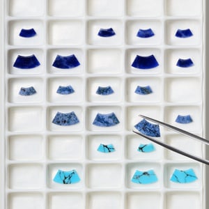 The iconic Possession jewellery collection now features ornamental stones: turquoise, sodalite, and dumortierite. A masterful play of delicate, deep blues celebrates color art, embodying its sensibility, refinement, and culture.