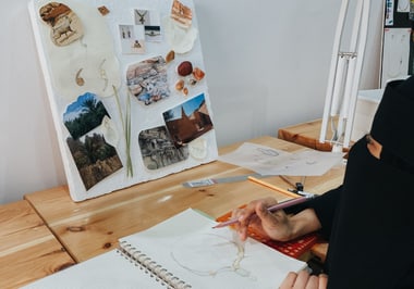 Ghadeer is 31 years old and graduated from Taibah University with an Art Education degree. She previously worked as a painter and jewellery maker, as well as a makeup artist, and comes from a family who love and appreciate creative arts. Ghadeer participated in several exhibitions in AlUla, but she stopped painting after she had her first child. “Three years ago I felt that I needed to improve myself and get back to my craft, so I started taking online courses and painting again.” She also loves interior design and practices it in her free time. “Ultimately, I hope to generate income through my creative work and become financially Independent.”