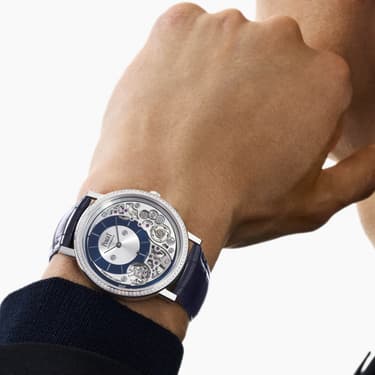 The Altiplano Ultimate Automatic watch in white gold and diamonds. A watchmaking innovation, this gold diamond watch is the ultra-thin icon that will elevate any connoisseur’s collection. The diamond-set bezel of this Swiss ultra-thin watch is not the only thing that shines, our watchmaking expertise shines just as bright. Our automatic 910P movement with peripheral oscillating weight is fused to the case back as the secret behind this impressive watch is marrying the movement to case to create one ultra-thin whole. Making this luxury automatic watch one of the thinnest watches in the world at only 5.30 mm thick. Each component of the movement is considered to achieve this extraordinary ultra-thin watch. The dial has an off-centered hours and minutes display for a contemporary design in a watch that is the modern addition to a decade’s long pursuit of the ultra-thin.