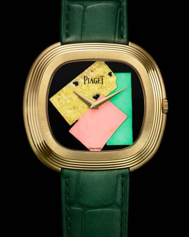 A tribute to Andy Warhol, the 'Collage' features a precious stone marquetry dial with an abstract self-portrait. Encased in 18-carat yellow gold, this watch embodies audacity and creativity.