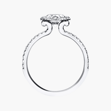 A celebration of the intense bond between two lovers and their shared passion, a crown of diamonds surrounds and exalts the central solitaire. The profile of the rounded Piaget Passion engagement ring symbolises two individuals coming together in complete harmony, meeting around the central diamond and feeding their love with endless passion.